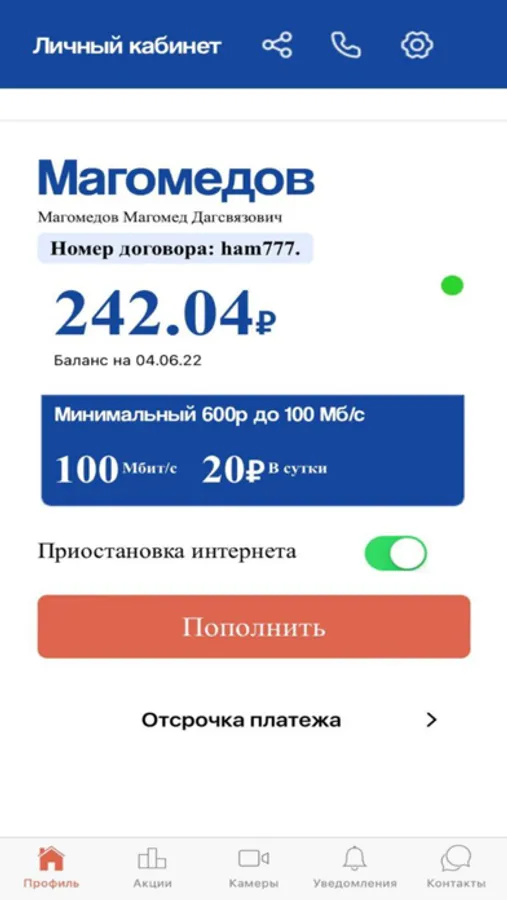 Установите приложение, введите логин и пароль ,это даст Вам возможность узнать актуальную информацию и управлять ею.