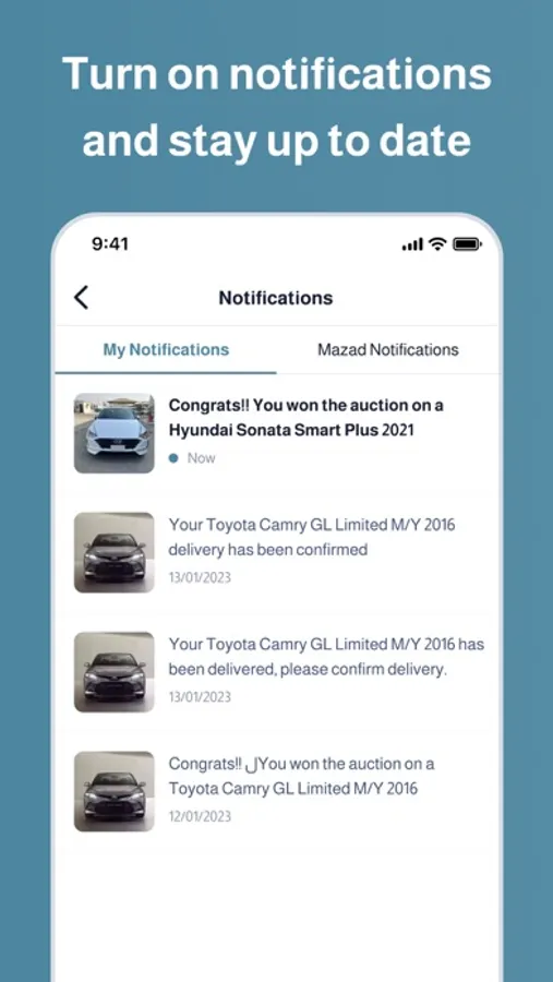 • Ability to activate notifications covering all stages of the auction to keep users well informed