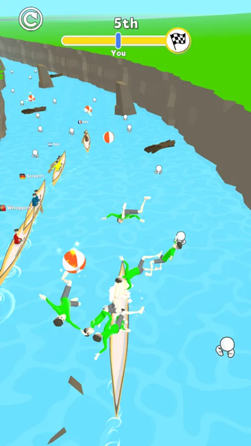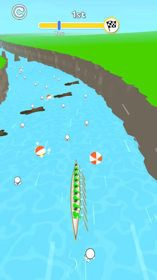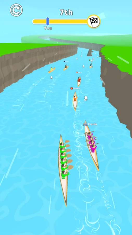 Collect floating white characters and boost your canoe. Slide your finger to move the canoe left or right.