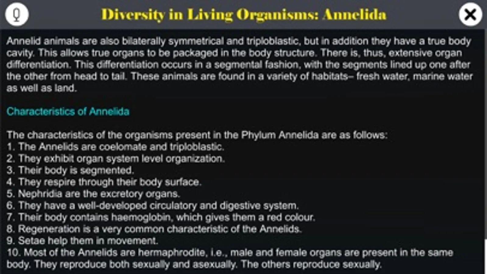 - Tap and Pinch Zoom - zoom into and identify about Diversity of living: Annelida.