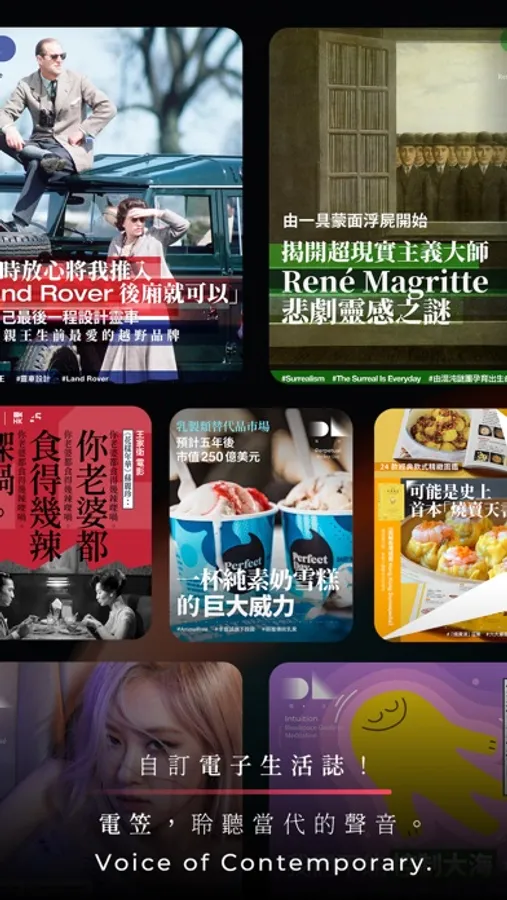 焦點主打八大範疇:文化藝術、家品飲食、人物專訪、電子科技、時裝美學、可持續環保發展、新聞故事,以及神秘學話。
