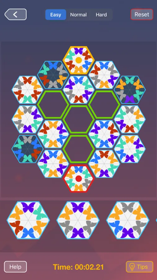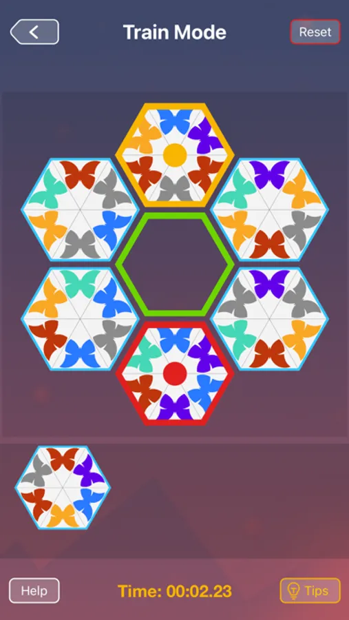 1. In the hexagonal disk, hexagons painted with six-colored butterflies are distributed in disorder;