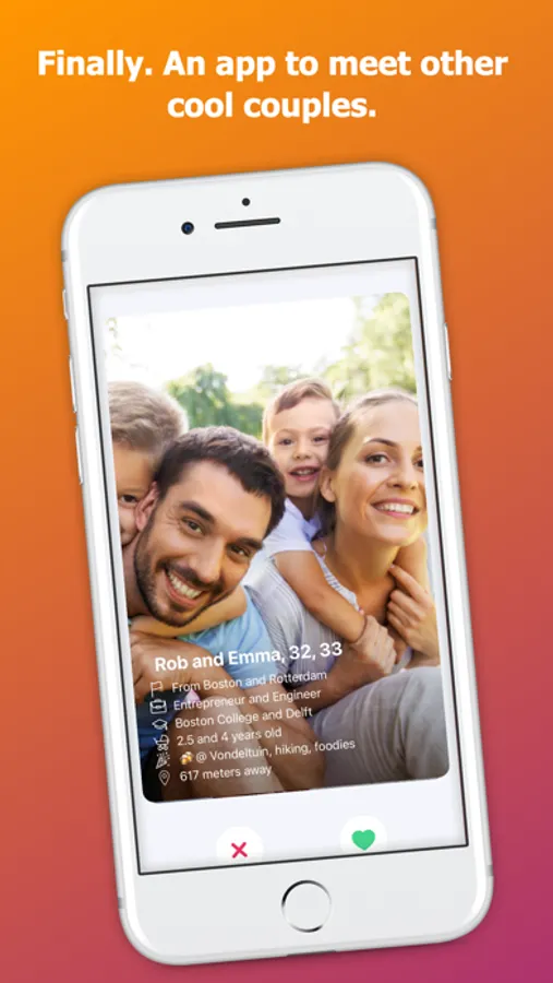 Party of 4 is for couples only. It's an app to find friends based on your location and the phase of life you're in (for example: if you have kids, no kids, etc.). It's an app for finding platonic friendship only (strictly enforced). Make a profile today and start swiping!