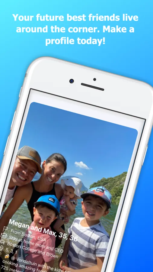 Simply set your filters and start swiping. Kids? No kids? Just moved to a new city? Find friends who are in the same phase of life as you.