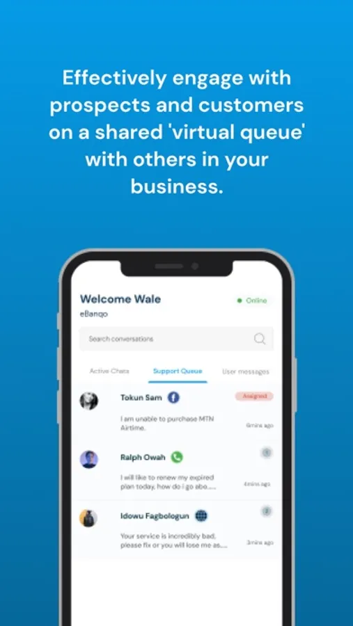 - Effectively engage with prospects and customers on a shared 'virtual queue' with others in your business.