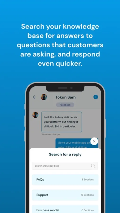 - Search your knowledge base for answers to questions that customers are asking, and respond even quicker.