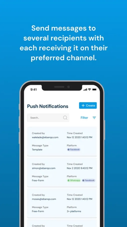 - Send messages to several recipients with each receiving it on their preferred channel*