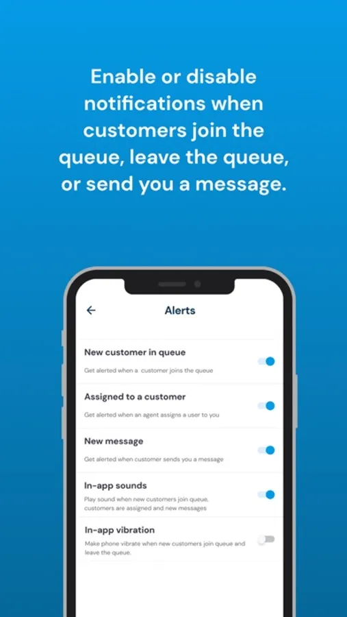 - Enable or disable notifications when customers join the queue, leave the queue, or send you a message.