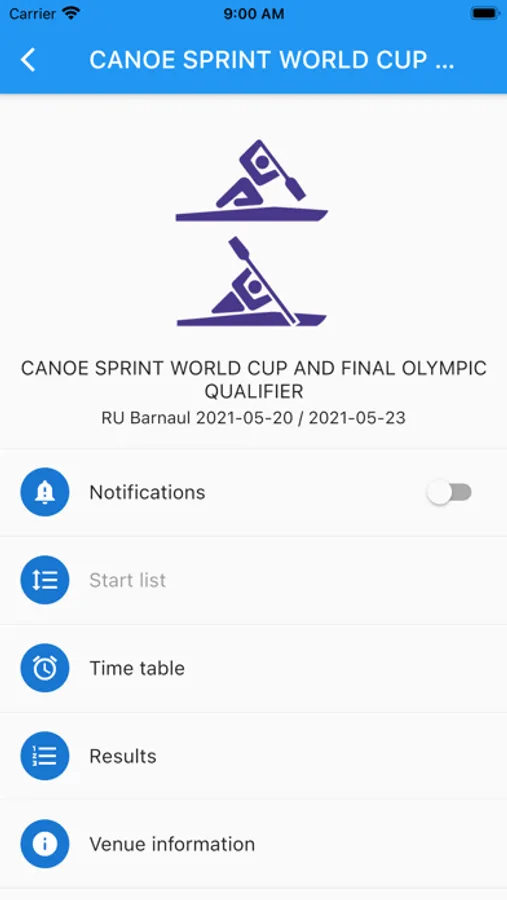With Barnaul Canoe App you can get all the information about the upcoming or past Canoe events in Barnaul. You get all the results in real time, time table, start list, photo finish image for each heat and final.