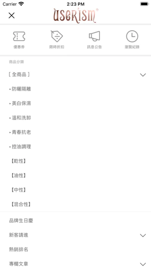 userISM分效美療第一品牌,全新行動購物官網上線,立即登入享會員獨家優惠,最新產品資訊與活動將不定期驚喜推播,讓你24H購物不打烊。