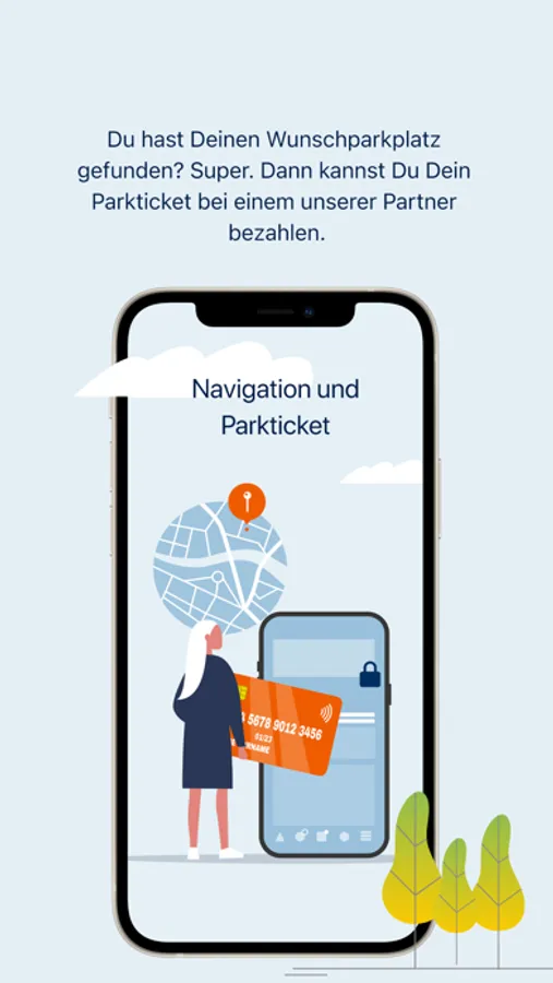 Hast Du dich für ein Ziel entschieden, kannst Du dich mit einem Klick von deiner gewohnten Navigationsapp an Dein Ziel führen lassen und bei Bedarf im Anschluss an dem von dir gewählten Parkplatz über unsere Partner direkt ein virtuelles Parkticket buchen.