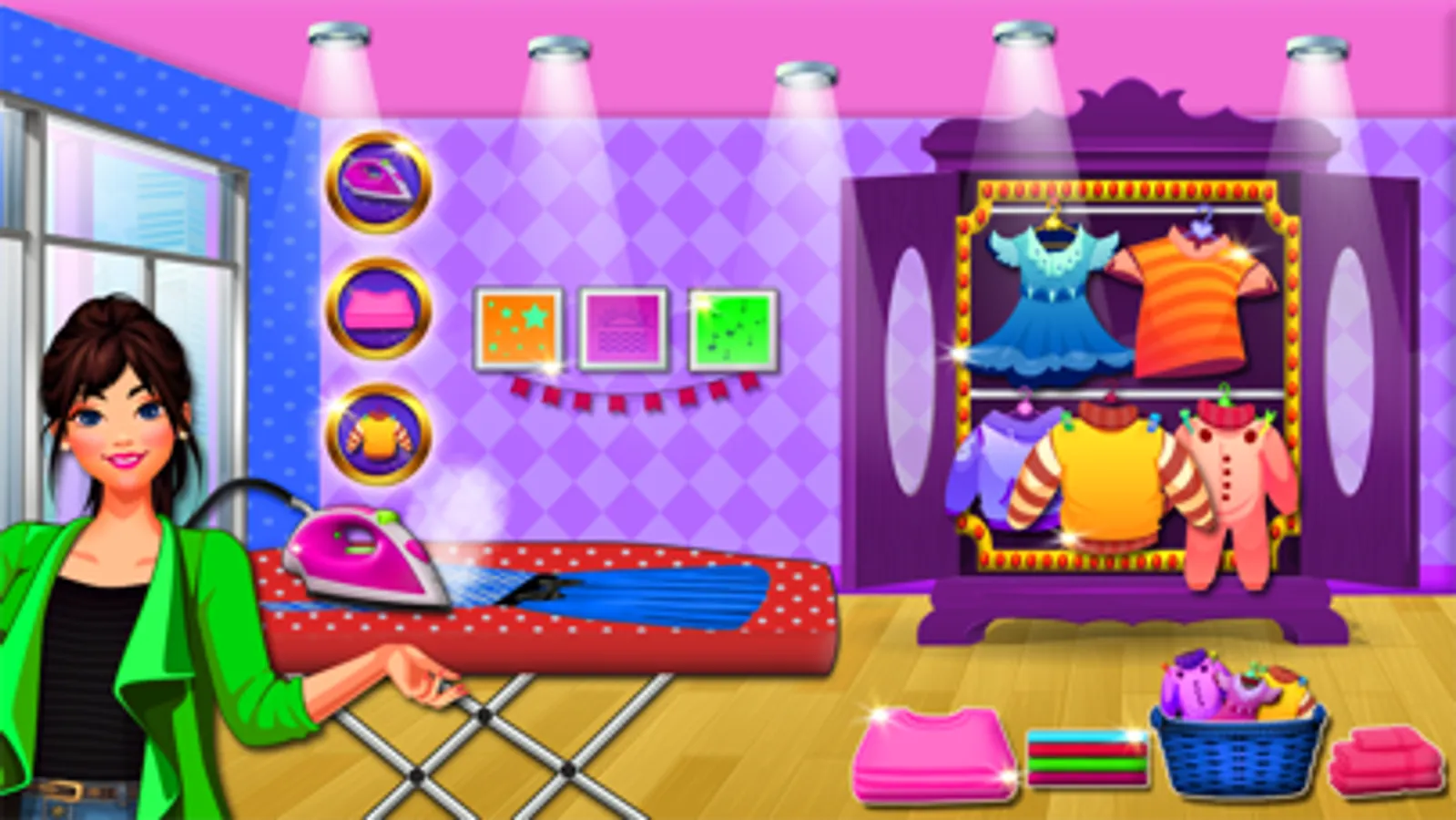 Welcome to the laundry cloth washing & house cleaning game, wash dirty clothes and perform room cleaning as well. Let’s manage and help pregnant mommy in completing daily tasks of the day and prove your laundry & house cleaning service skills. You might have played many house cleaning games & laundry games but this automatic washing machine game have some exciting features for girls like ironing clothes.