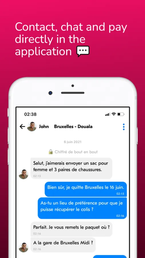 2. INSTANT MESSAGING: the connection between travelers and senders is done directly within the messaging system integrated into the application. No more unwanted messages on your personal accounts (SMS, email, social networks, etc), everything happens in Sendylo.