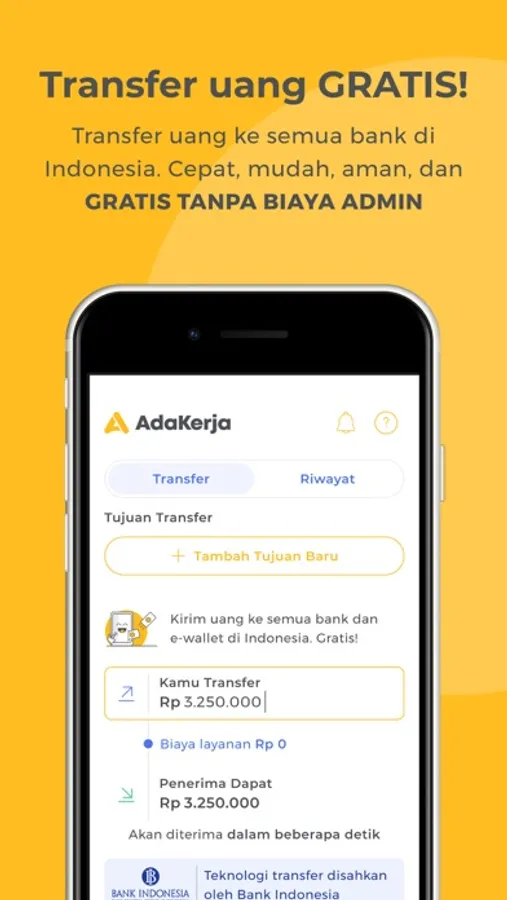 AdaKerja adalah aplikasi untuk mencari kerja, mencatat absensi kerja dan menerima gaji langsung dari tempat kerjamu! Juga kamu bisa melakukan transfer uang ke bank manapun secara gratis tanpa biaya! Semua hal yang kamu butuhkan sebagai pekerja tersedia di satu aplikasi!
