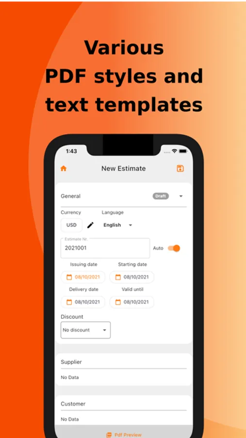 This app helps you easily create and manage price offers in English, Czech, Slovak, Russian and Ukrainian language, manage them, generate them as the pdf format and send them to the customer.