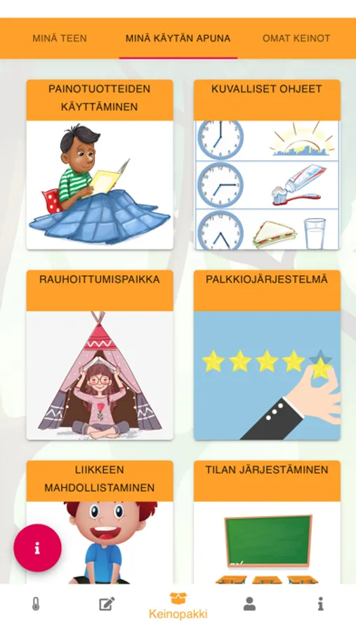 Toimi! Sovellus auttaa kehittämään vireystilan tunnistamista ja itsesäätelyä. Sovellus tarjoaa lapsenomaisen ja pelinomaisen tavan oppia lisää vireystilasta ja itsesäätelystä. Toimi! Sovellus yhdistää ammattilaisten teoriatiedon ja käytännön vinkit helpoksi arjessa käytettäväksi työkaluksi.
