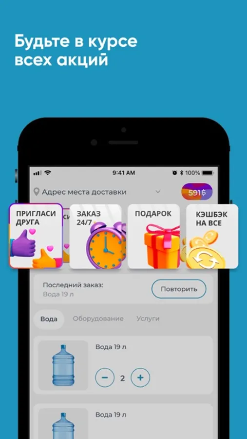 Скачайте приложение «Зелёный городок Иваново» на свой смартфон и делайте заказ воды 24/7. Вы сможете повторять заказ нажатием одной кнопки, видеть всю историю покупок и быть в курсе всех акций компании.
