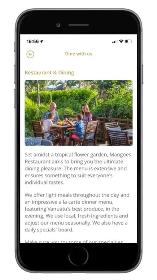 Developed for seasoned, savvy travellers, The Terraces boutique apartment experience has been designed to provide everything you need to explore our resort and Port Vila. Our app has great information to help you make the most of your stay, such as: