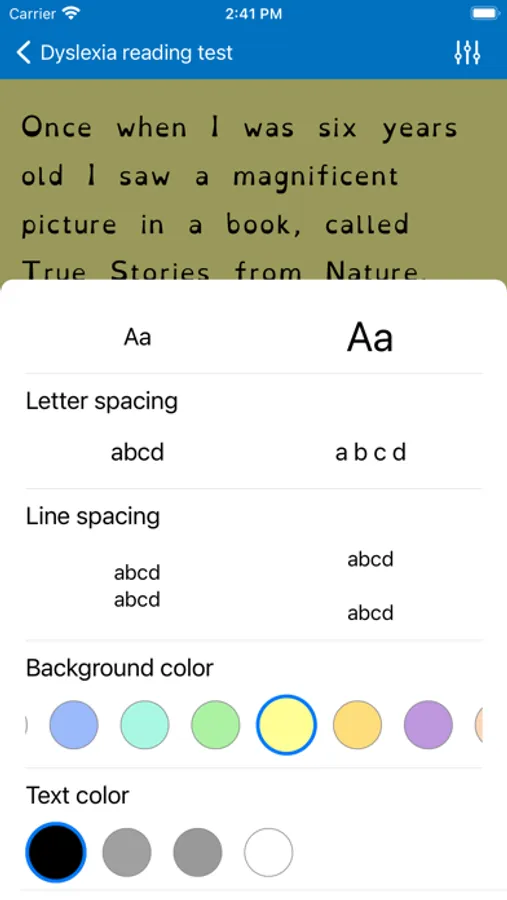 With this application, my goal is to make you discover settings that can improve the reading of children and people with dyslexia.