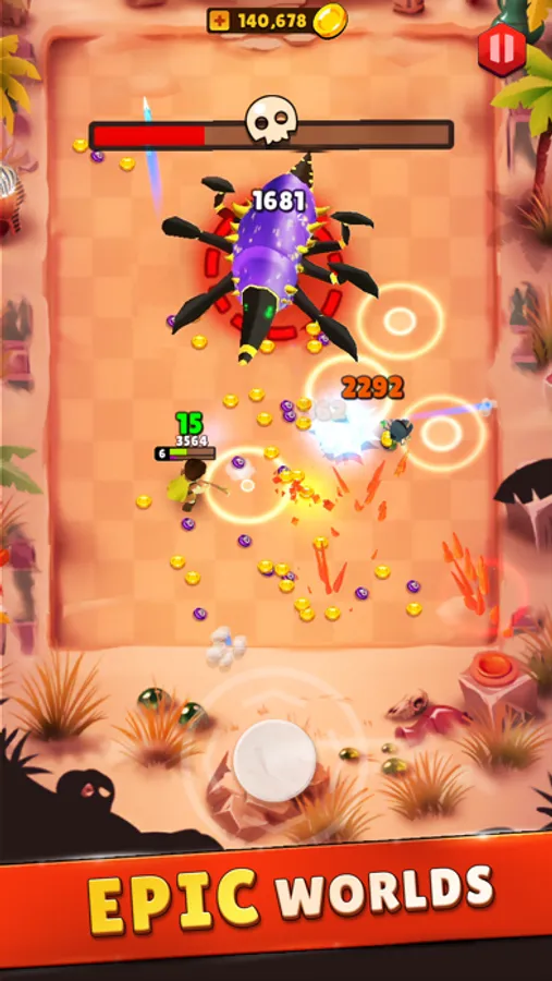 Fun to play. Enjoy fun quick games in epic worlds: Inferno, Deadly Desert or Graveyard. Survive waves of attack. You can control move and shoot with one touch. Improve your unique skills and gain rare equipment that make you stronger. Gain rewards and materials.