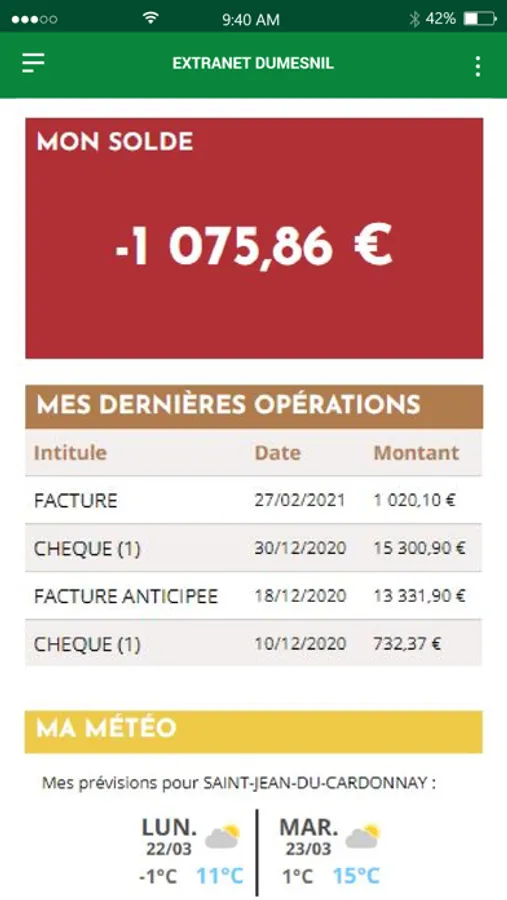 L'application mobile Dumesnil vous permettra de vous connecter à votre espace client pour y retrouver vos contrats, vos commandes, vos factures, vos livraisons...