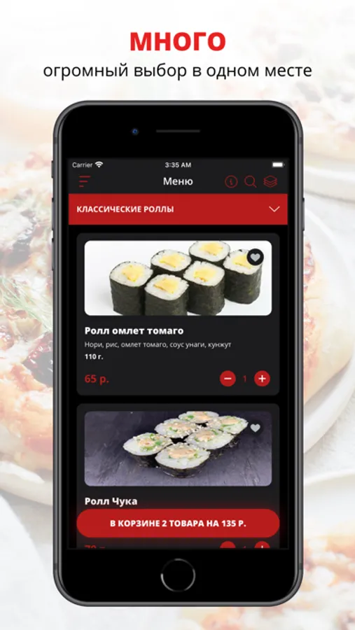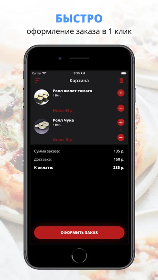 Воспользуйтесь нашим приложением для быстрого заказа еды с доставкой на дом или в офис!