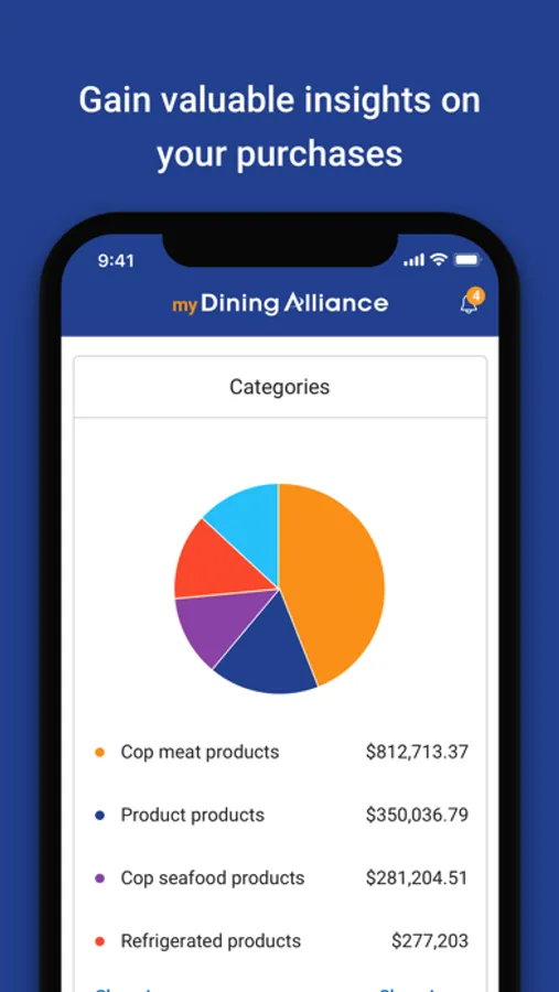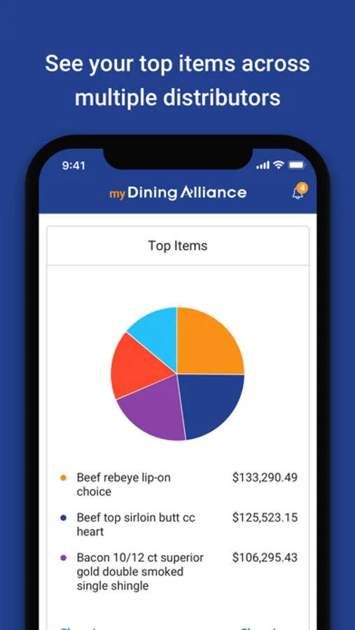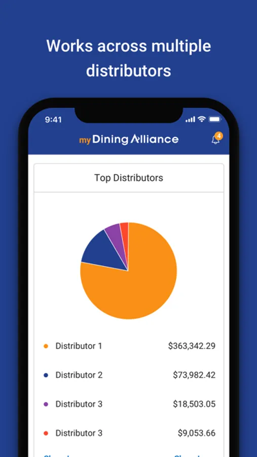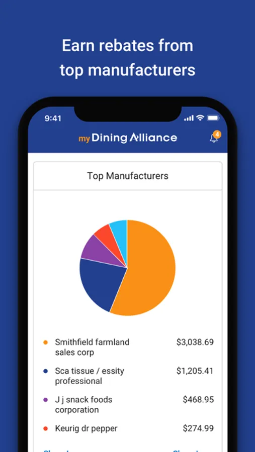 The Dining Alliance app makes managing your Dining Alliance account a breeze. You can sign up for Dining Alliance, input your distributor account numbers, check the status of your rebates, claim your rebate payments, register for free savings programs and view valuable insights about your account with ease.