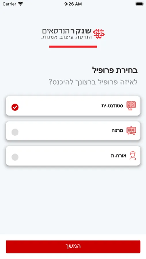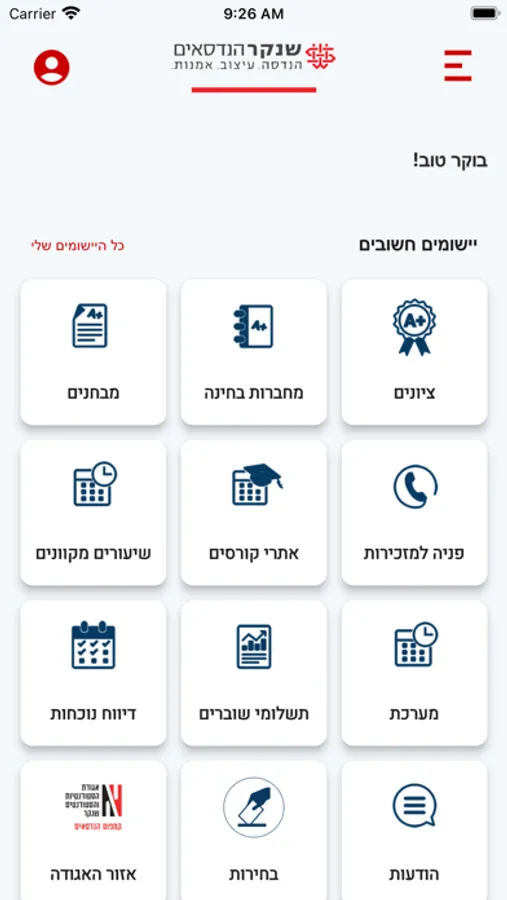 אפליקציית שנקר הנדסאים לסטודנטים ולסגל