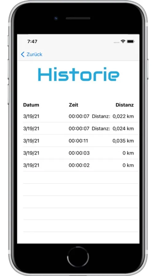 In der Historie siehst du jederzeit deine bisherigen Läufe.