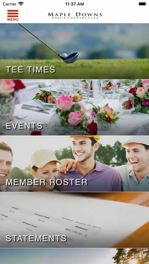 Connect with the Club wherever you go! The Maple Downs Golf & Country Club app provides members with the ability to book tee times, book a tennis court, book a spot at the pool, online ordering, make dining reservations, attend social events, view statements, access the roster to connect with other members and receive notifications on upcoming Club events, all by the way of your mobile phone or tablet.