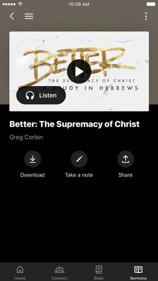 This app will help you stay connected with the day-to-day life of our church. With this app you can: watch or listen to past messages; stay up to date with push notifications; share your favorite messages via Twitter, Facebook, or email; and download messages for offline listening.