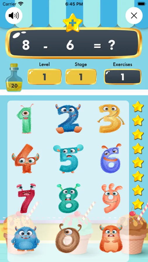 With a very "delicious" graphic environment and a "game" type interface, it is the ideal application to motivate children to master the two most basic and important operations in mathematics: Addition and Subtraction