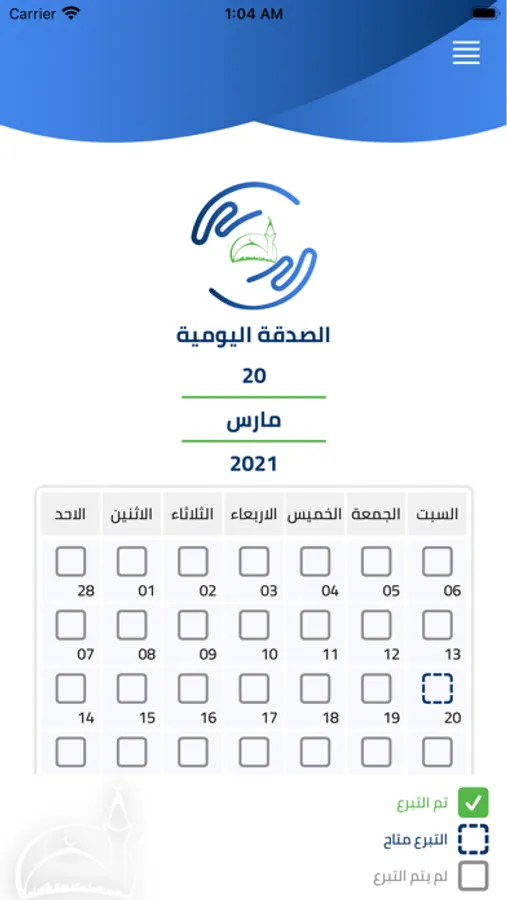 - تذكير للصدقة اليومية لليوم الحالي .