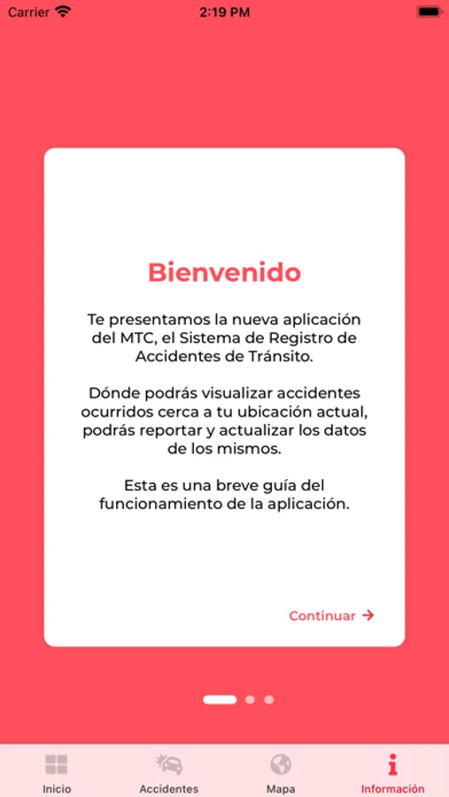 El aplicativo permite georreferenciar en tiempo real los accidentes de tránsito, ingresar vehículos involucrados, así como las personas afectadas, interconectándose con diferentes fuentes de información y alimenta el Visor de Alertas de Accidentes de Tránsito