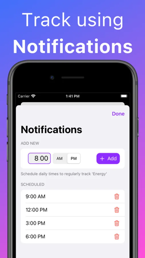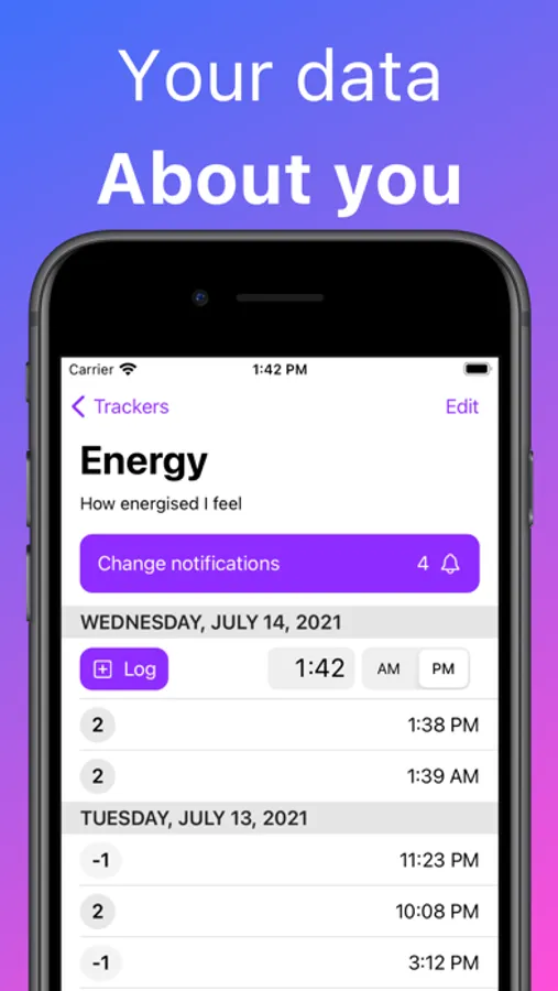 Set daily reminders easily that make it quick to log an entry. Simply long press or swipe a notification to log it there and then, allowing you to focus on your life, not your logging.
