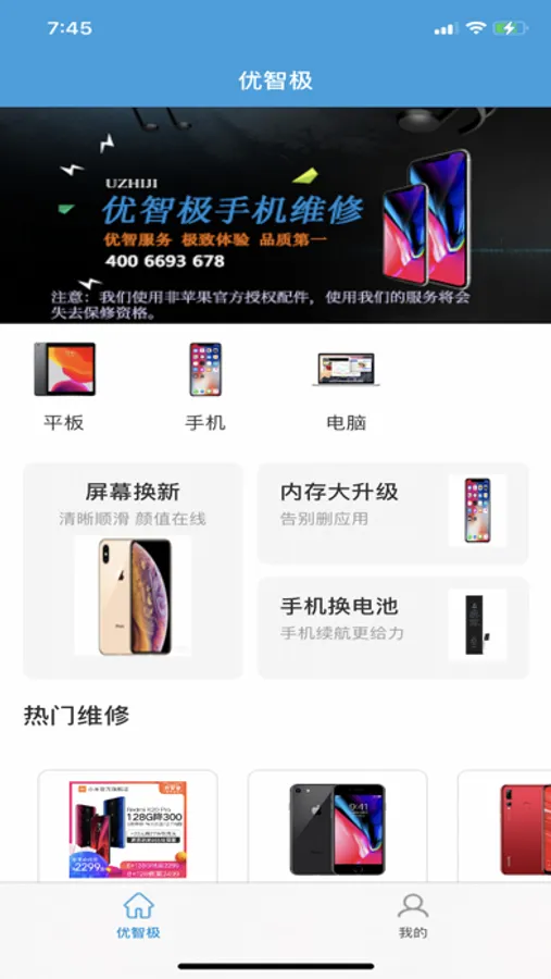 我们提供了三种服务方式,包括上门、到店和邮寄,通过多种方式解决不同地区用户的服务需求。我们支持包括苹果手机、iPad、苹果笔记本等产品的维修。