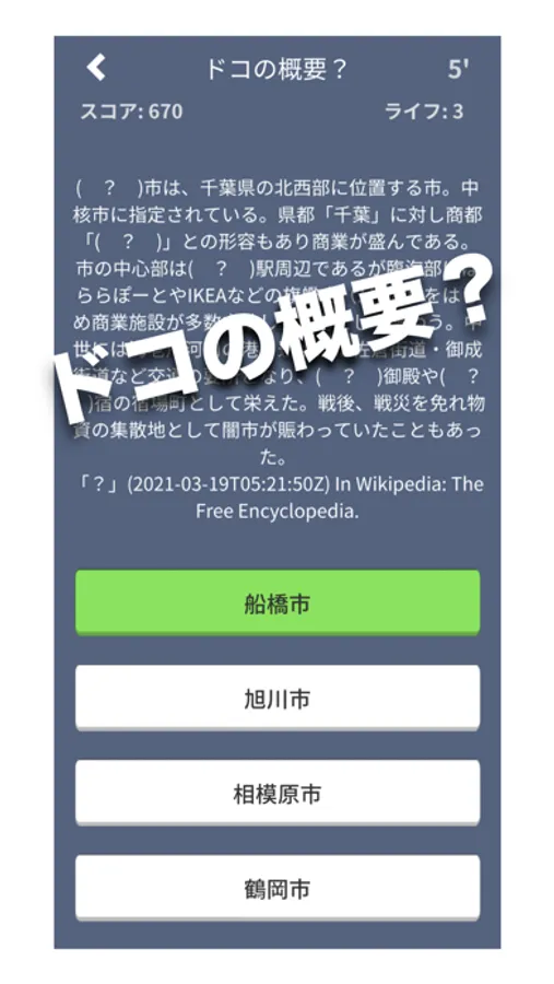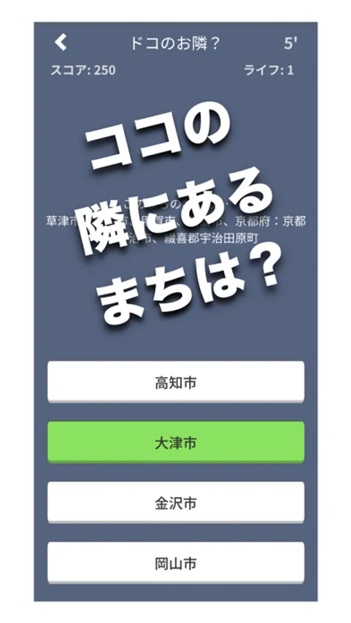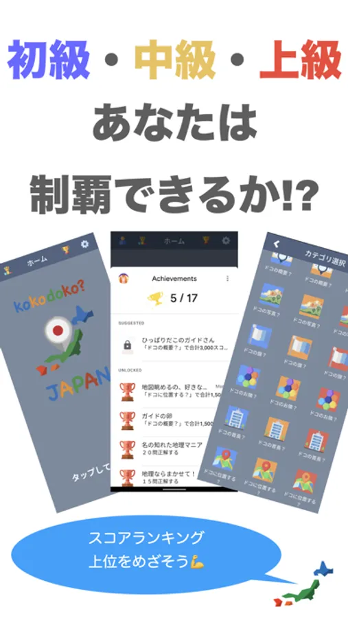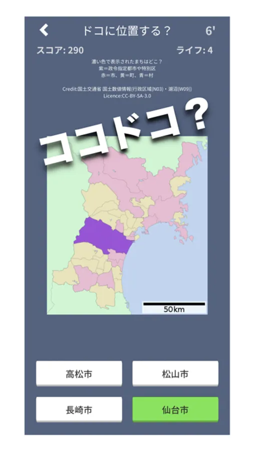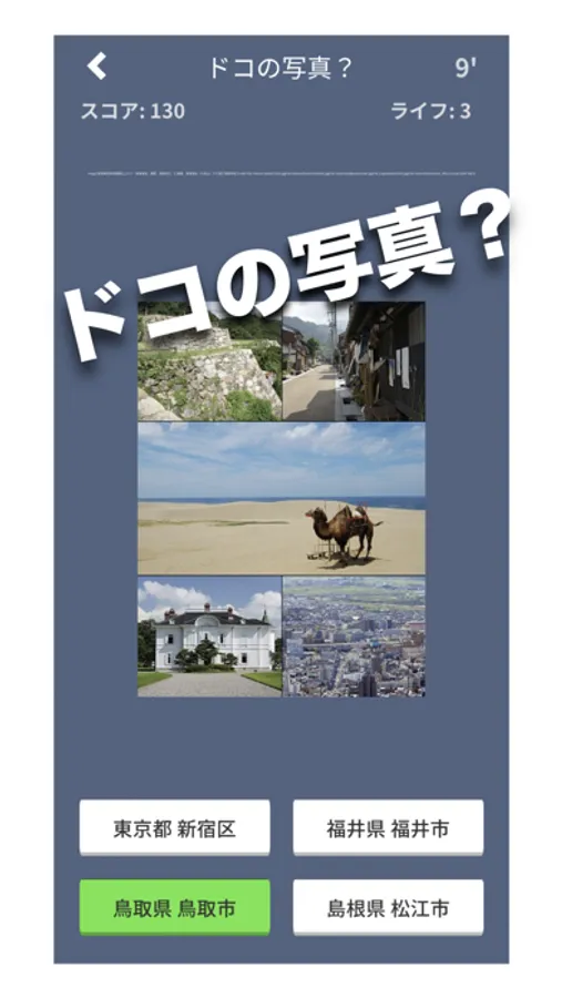 「このまち、ドコ?」風のクイズで、楽しく日本のまちを当てるアプリ。日本には有名どころの県庁所在地から、ちょっとマイナなところまでたくさんのまちがあります。まちの概要や写真、旗などから連想される日本のまちをサクッと答えていきましょう。難易度は初級、中級、上級まで用意。地理好きなあなたも、日本のことをもっとよく知りたいあなたも、基礎はもちろんニッチなジャンルまで挑戦して、ココドコスコアを高めて日本一の地理マスターを目指しましょう。