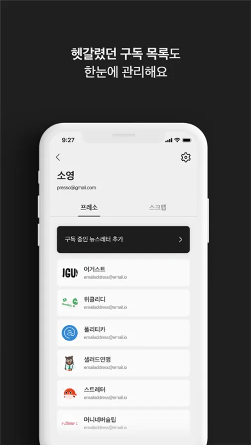 복잡한 메일함 대신 프레소에서 뉴스레터만 쏙쏙!!