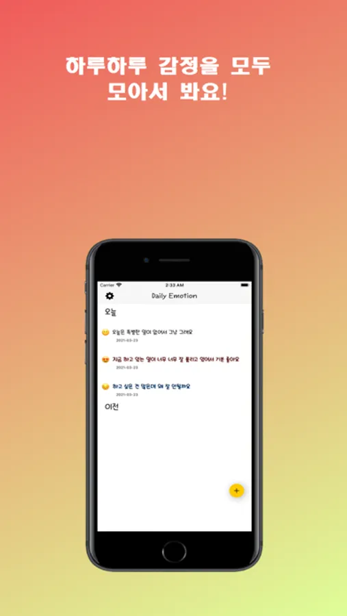 하루하루 느꼈던 감정을 쉽고 간편하게 등록할 수있는 감정일기입니다!