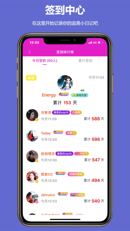 2.特别设有“打卡”功能,用户可开通私人专属打卡话题,发布有积极意义的内容,每天打卡有奖励,累计打卡和连续打卡更有丰厚奖励!