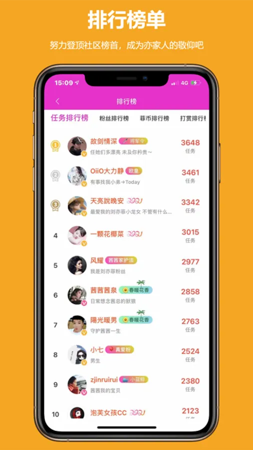 4.个人主页可查看等级、菲币、人气等;另有丰富的头衔系统,通过做任务、签到和参与活动等方式活得,彰显你的独特身份!