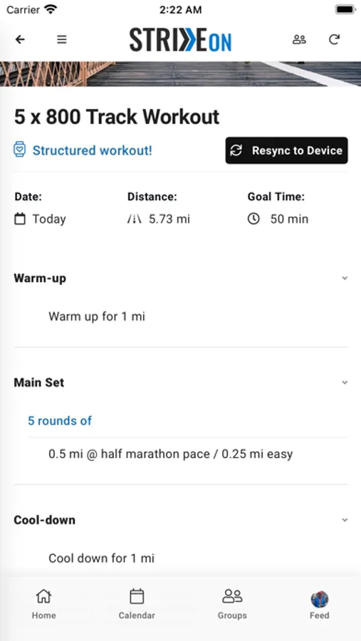 StrideOn can sync structured workouts to your Garmin or COROS device to guide you through workouts and keep you on pace.