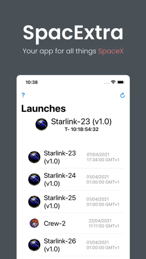 SpacExtra is your one-stop-shop for all things SpaceX - the world's most innovative, privatised space company! You can track the upcoming launches, learn about the SpaceX fleet, and countdown to T-0 on your Home Screen!