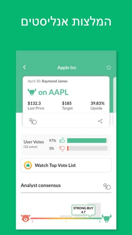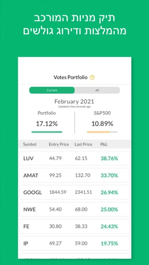• תיק השקעות המורכב מהטופ של בחירת המשתמשים על האנליסטים המובילים