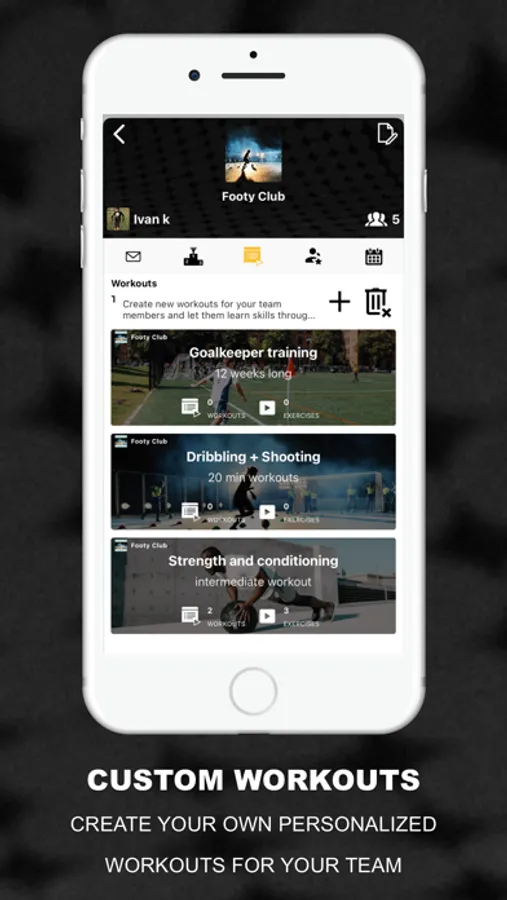 Features: Team competitions | Customized workouts | Video review | Schedules | Team Chat