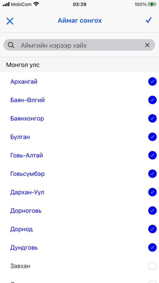 -Аялсан аймгуудын зураг дэлгэцэнд тодорно