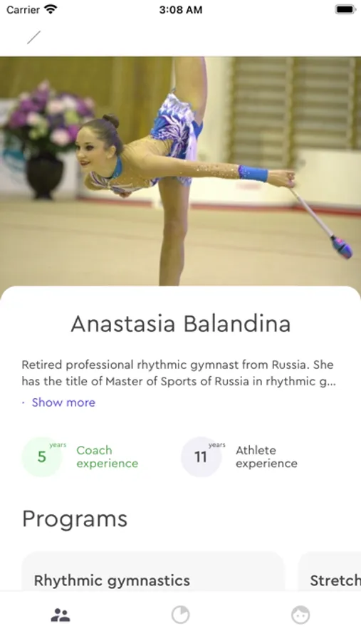 Coaches in this rhythmic gymnastics online school can help for gymnasts (and not gymnasts) with any level. All coaches are excellent professionals, we have an honorary title in rhythmic gymnastics in Russia. You can choose an individual and a group training. The coaches create training programs of the appropriate level, we take into account abilities, tasks and together we go to the goal.