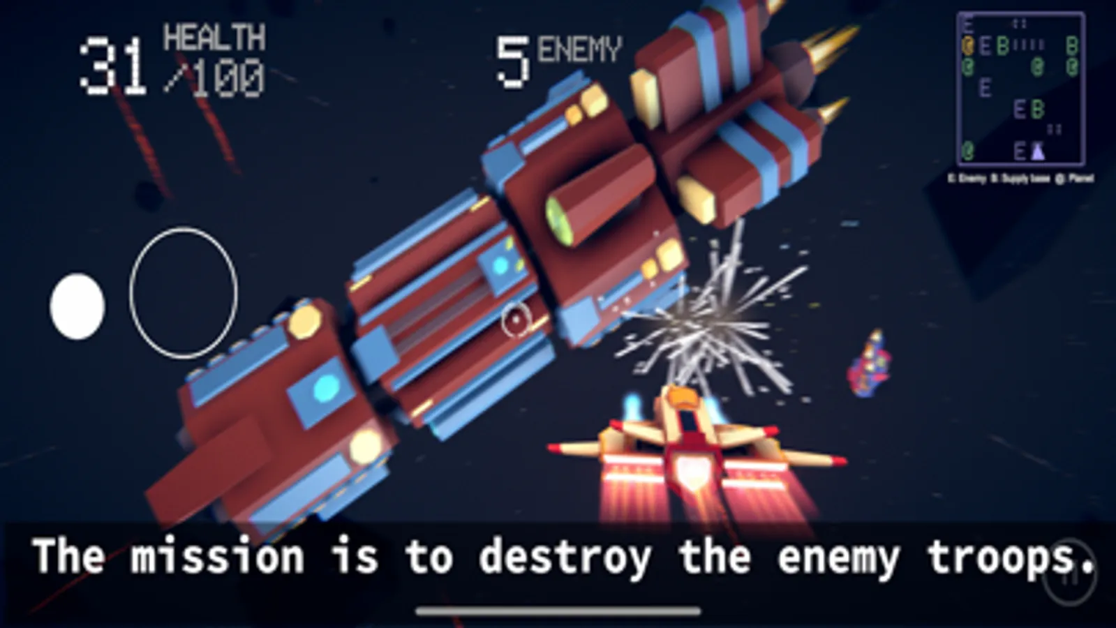 When the health value of your ship reaches 0, your ship is destroyed and the game is over.