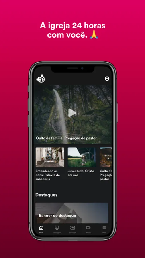 - Conecte-se com a igreja através dos grupos de interesse, receba conteúdo direcionado e obtenha sua carteirinha exclusiva.