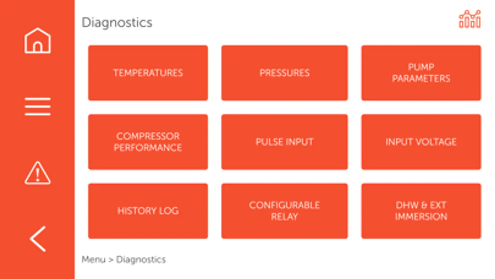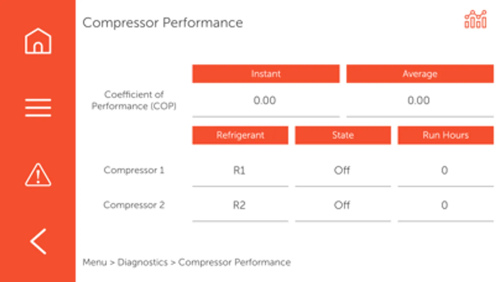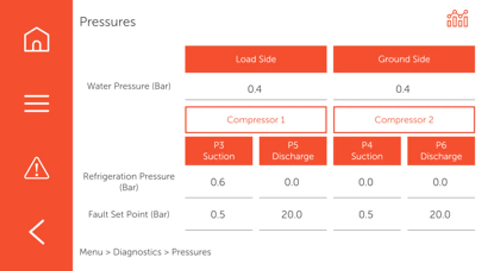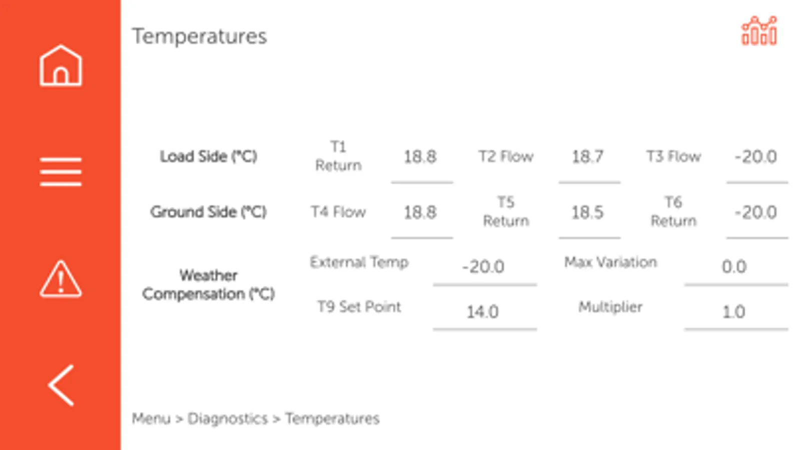 Allows the user to connect to a wifi enabled Kensa brand heat pump. Allows the user to view the current state (stopped, hot water demand, heating demand), current parameters (temperatures and pressures), and allows the user to view history and error logs.